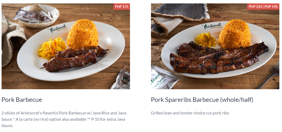 The Pork Barbecue meal they offer contains 2 sticks of aristocrats flavorful prok barbecue mixed with java rice and java sauce it is totally a bargain for me and you.